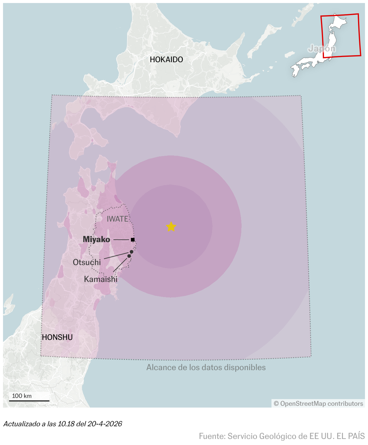 Un terremoto de magnitud 7,7 ha sacudido este lunes la costa noreste de Japón, según ha informado la Agencia Meteorológica del país. El seísmo, registrado a las 16.52, hora local (las 9.52 en la España peninsular), ha generado un tsunami en la prefectura de Iwate y en la isla de Hokaido, de acuerdo con el sistema de alertas de la televisión pública japonesa NHK. Las autoridades han confirmado olas de casi un metro de altura y llegaron a avisar de que podrían llegar a los tres metros. Finalmente, con el paso de las horas, la Agencia Meteorológica de Japón ha retirado la alerta de tsunami emitida. Pero, en cambio, las autoridades han pedido precaución ante el incremento del riesgo de sufrir un seísmo mayor la próxima semana.